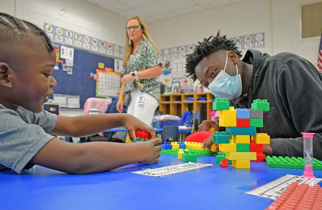Day two of the new school year proved to be a big one for some Statesboro High School Early Childhood Education students. Third-year students met their new crop of pre-K students, while most second-year students got to experience life in a pre-K classroom for the first time.