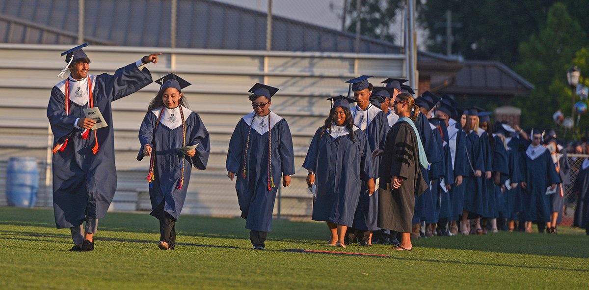 A special chair was left empty among the graduates for honorary graduate Tucker Lanier, who passed away at the age of 15 in 2016 from complications due to Hunter's Syndrome. His mother, Casey Hurst, hung a tassel on a picture of her son following the graduation ceremony.