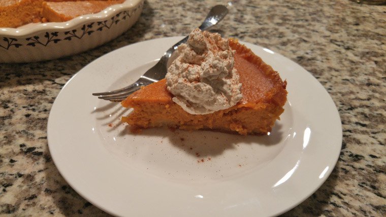 Preheat oven to 325 degrees. In a large bowl, whisk together pumpkin and next eight ingredients. Roll thawed pie crust over 9-inch pie plate, crimping edges with a fork. Pour mixture into prepared crust. Bake for 1 hour and 25 to 30 minutes or until center is set and a wooden toothpick inserted in center comes out clean. Let cool for 1 hour before serving.