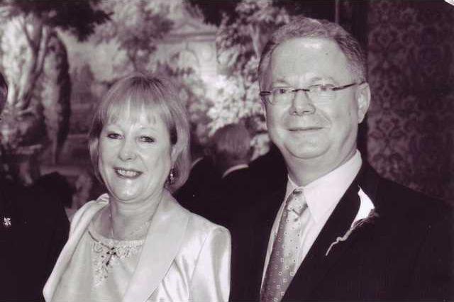 The bride was attired in a gold silk dress subtly adorned with pearls. She wore an heirloom from her great-great-grandmother, Josephine Piraud, which her mother had first worn during her Catholic Confirmation in Grenoble, France, engraved with her initials and date, J.P. 1823. The bride is the great-granddaughter of late General Arthur Piraud, who was awarded the Croix de Guerre by King Louis Philippe II and the granddaughter of the late Dr. and Mrs. Georges Piraud of Grenoble, France. Also, she is the granddaughter of the late Sir Harry Franklin, knighted by Queen Elizabeth II for service to the Crown in Northern Rhodesia as minister of Finance. Her parents are Mr. and Mrs. Henry Clive Franklin of Chislehurst, Kent, England.