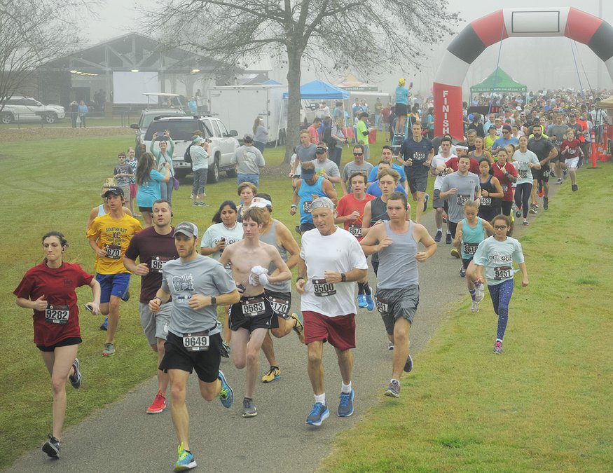 Racers convene at the Georgia Southern University RAC Pavilion for a 5K, 10K or Fun Run. Swag bags and t-shirts are available, as long as supplies last, and chocolate is involved. Definitely chocolate.