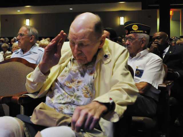 Music preceding the program was provided by Bill Coen, of Statesboro First Baptist Church, who sang old standards and patriotic songs. During the program, names of fallen Bulloch County veterans of wars, World War I to the wars in Iraq and Afghanistan, were intoned by various local veterans.