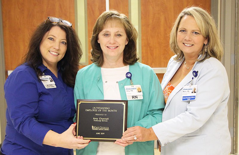 East Georgia Regional Medical Center has named Amy Channel, who works as an RN in the Endoscopy Department, for the hospital, Employee of the Month for July.