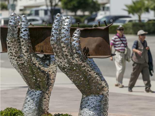 Heath Satow, a sculptor in southern California hired to design a 9/11 memorial for the plaza fronting Rosemead's city offices, recalls awkwardly scanning a digital catalog showing beams available from the Trade Center. But hundreds of hours creating the memorial — a 10-foot beam cradled by hands of chrome, the palms and fingers formed from 2,976 interlocking birds representing individual victims — left a deep impression.