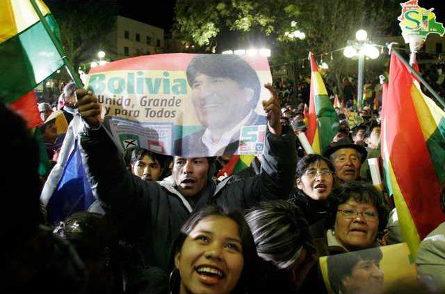 "What happened today is important not only for Bolivians but for all Latin Americans," Morales told several thousand cheering supporters Sunday night from the balcony of the presidential palace. "I dedicate this victory to all the revolutionaries in the world."