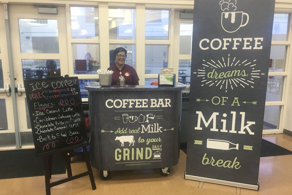 It's why the group is providing a grant for a coffee bar at a fourth high school in the Fort Zumwalt, Missouri district this upcoming year. In exchange, the group gets data on how much milk is used for the lattes, as well as information for personal pizzas, mozzarella sticks and other products with dairy.