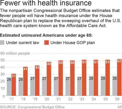 The budget office attributed projected increases in uninsured Americans to the GOP bill's elimination of tax penalties for people who don't buy insurance, reduced federal subsidies for many people who buy policies and the Medicaid reductions.