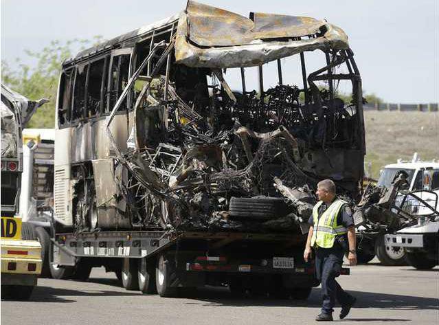 Five students from the Los Angeles area, three chaperones and the truck and bus drivers died in the crash. Dozens were injured, and several remained hospitalized Saturday, including at least one in critical condition.