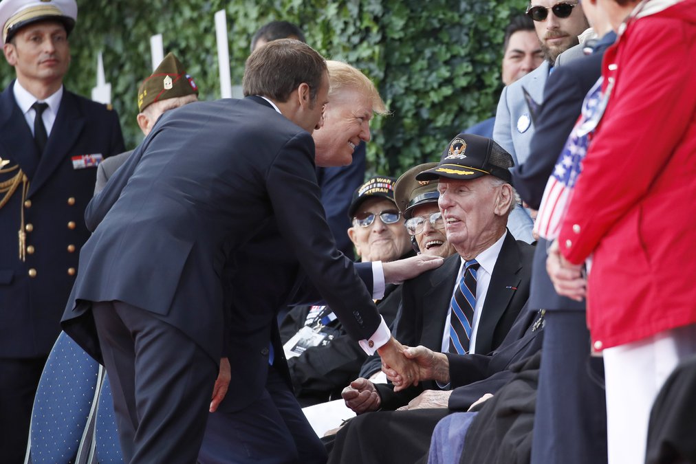 Macron saluted the courage, generosity and strength of spirit that made them press on "to help men and women they didn't know, to liberate a land most hadn't seen before, for no other cause but freedom, democracy."