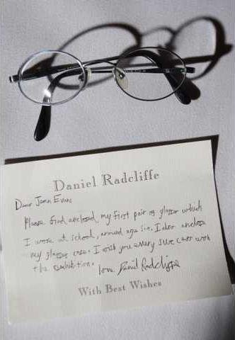 The 18-year-old Radcliffe, whose mother is Jewish, sent the oval, gray metal-framed pair of glasses he wore as a 6-year-old.