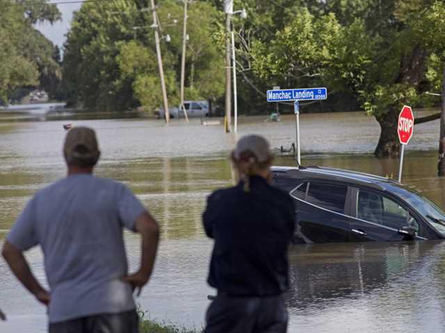 Water crept into his parking lot Friday night, and by Sunday his gasoline pumps were covered. Floodwaters had never come within 200 yards of the place before, he said.