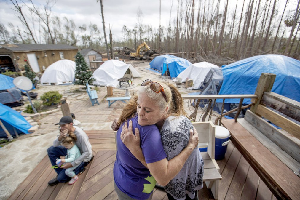 The tents shelter those still homeless more than four months after Hurricane Michael screamed ashore with 155-mph (250-kph) winds, flattening, blowing away or rendering uninhabitable thousands of houses.