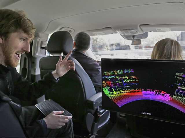 LASER GUIDED: Smaller versions of those spinning 360-degree mechanical laser sensors that sit atop self-driving cars are coming to mainstream vehicles. The lasers, called Lidar for Light Detection and Ranging, can see far-off objects in the dark, in bad weather, and in great detail. Audi plans to introduce a front-facing laser in the grille of the A8 sedan this fall as part of a limited self-driving system that takes control of the vehicle in freeway traffic jams below 37 miles per hour (60 kilometers per hour). Spokesman Mark Dahncke says Audi is still working to consolidate Lidar with radar and cameras as it steps from human control to limited automated driving.