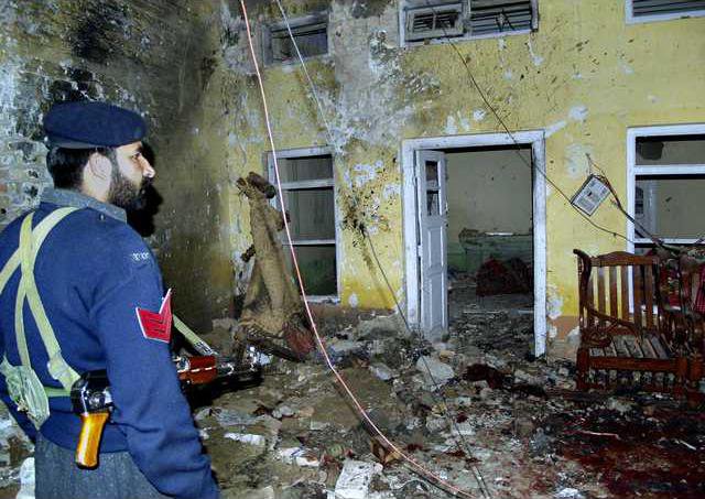 The blast occurred inside a hall where about 200 people had assembled for a political rally in the town of Charsadda in turbulent North West Frontier province, where Islamic extremists have been battling government forces.
