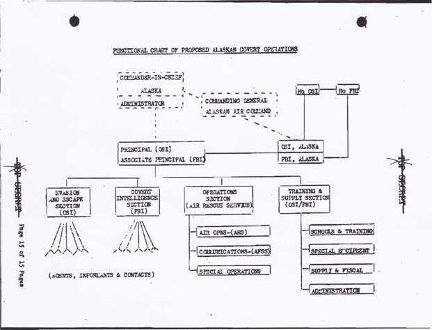 The first and more urgent was the stay-behind agent program. The second was a parallel effort to create a standby pool of civilian operatives in Alaska trained to clandestinely arrange for the evacuation of downed military air crews in danger of being captured by Soviet forces. This "evasion and escape" plan was coordinated with the CIA.