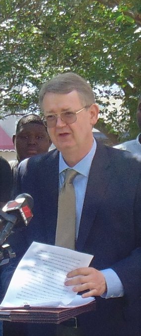 Attorney Kevin Gough from Brunswick and a leader of the larger Church of God the Bibleway organization, Apostle Clayton A. Cowart from Florida, gathered with the men they called “the Bibleway Five” and other Redeeming Love parishioners on the Bulloch County Courthouse lawn. Gough said a copy of the motion to dismiss the case against Pastor Eli Porter had just been delivered to the Bulloch County State Court solicitor.
