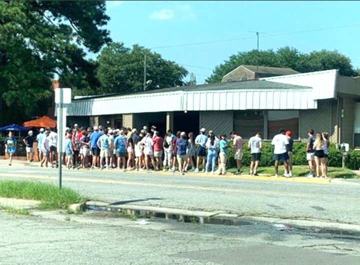While there have been a number of area businesses reported to have a significant increase in patrons since students began returning, the landmark Dingus Magees on Chandler Road got social media interaction when someone posted photos of students standing in crowded lines outside the popular spot. The photos caught the attention of some worried parents, who reached out to the Statesboro Herald and Statesboro police for help through emails and phone calls.
