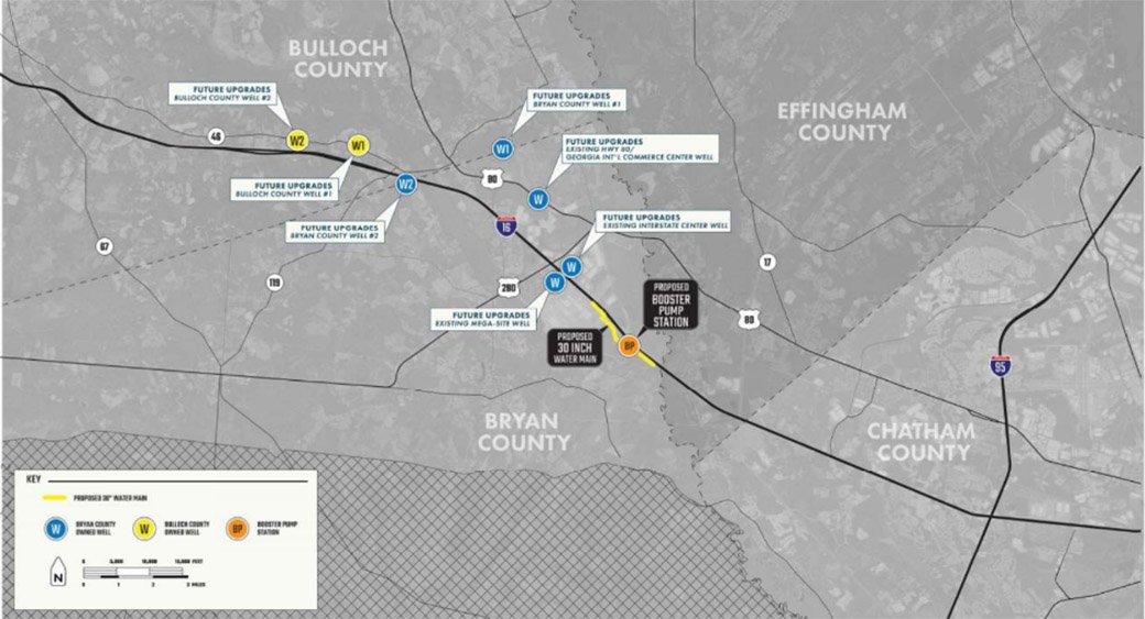 “The primary and first goal here is to replace the Hyundai water that we’re using right now, that we’re drawing from the Bulloch wells … to replace that as an entirety so that anything that’s going to that plant will be coming from surface water from Effingham,” Kirk Croasmun, Bryan County’s engineering director, said.