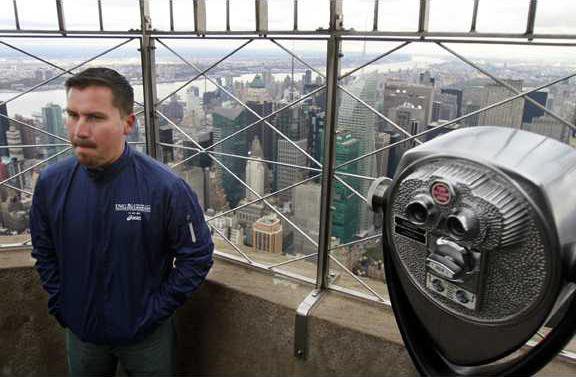 Hunched over against the cold on the 86th floor of New York's tallest building, Pena peered through binoculars at Central Park, site of the marathon's finish line Sunday.