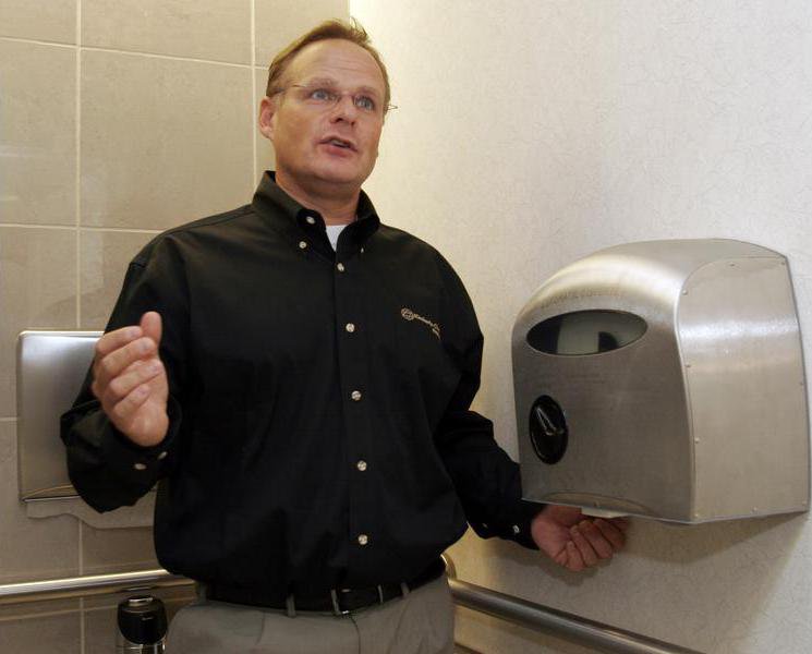 ‘‘The one part of the room where there’s not an automatic option is toilet tissue,’’ says Thorne, director of the company’s washroom business.