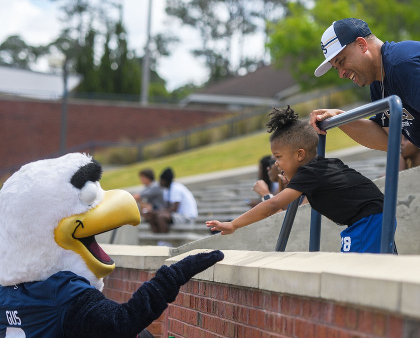 Georgia Southern football held its annual Blue-White spring game at Paulson Stadium on Saturday, April 5. The Eagles offense scored eight times, and the defense recorded four sacks and a turnover in the game.