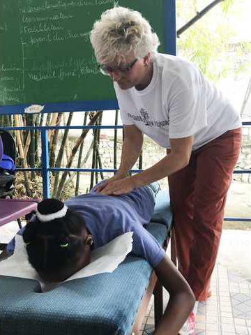 “After the earthquake, women walk three to five miles every day to collect water in five gallon buckets, often carrying them on their heads to return,” said Kitching, explaining that many of the girls suffered from constant back and neck pain.