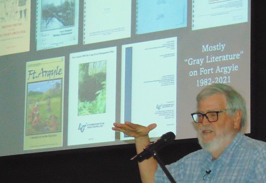 Featured speaker Daniel T. "Dan" Elliot, a now "semi-retired" archaeologist who has worked with the Savannah-based, nonprofit Lamar Institute, led the institute's excavation at the Fort Argyle site in 1996, in a project funded by the U.S. Department of Defense Legacy Resource Management Program. Later, in 2018-19, the Army hired a company called LG2 Environmental Solutions to do an even larger excavation, and he again was hired to run the project and write the report.