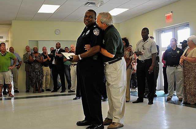 Statesboro City Councilman Gary Lewis shook Holloway’s hand and said “All the citizens of Statesboro, and all of law enforcement, we have a heart for you, and we love you.”