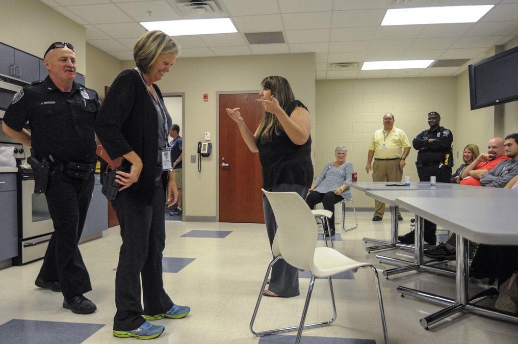 “I guess I didn’t realize, also, how much they’re involved in dealing with craziness,” said Ginger Larrabee. “People are crazy – when they’re mad, when they’re upset. (Officers) have to be a little bit of a psychiatrist. A counselor.”