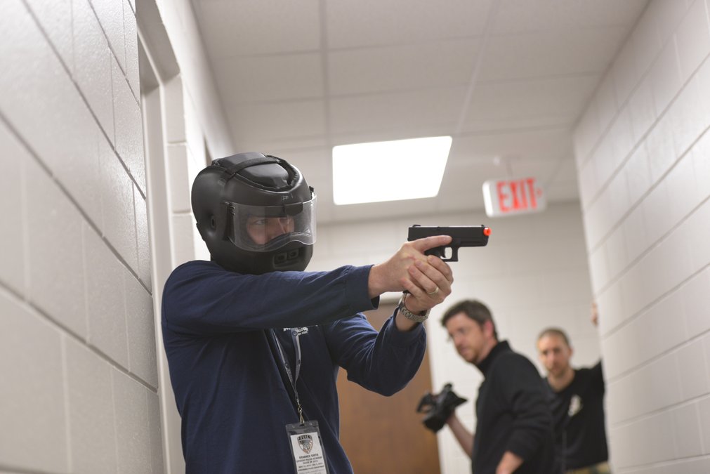 Students don’t get to handle real firearms in the class, but they got to experience a variety of training tools that simulate the experience of handling a real weapon during the scenarios. Many students had experience with firearms, but it was something new for several.