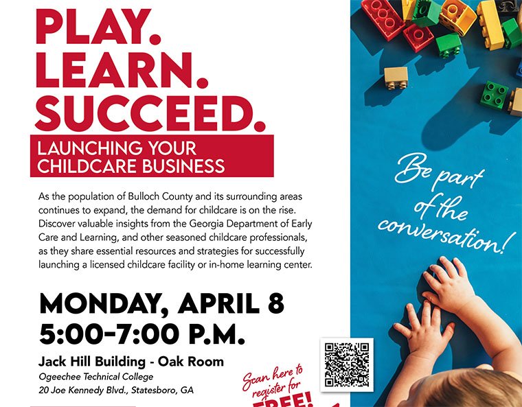 "As the population of Bulloch County and its surrounding area continue to expand, the demand for childcare is on the rise," the release stated. "Discover valuable insights ( at the Monday event) from the Georgia Department of Early Care and Learning, and other seasoned childcare professionals as they share essential resources and strategies for successfully launching a licensed childcare facility or in-home learning center."