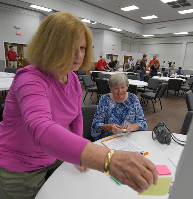 Monday’s public input workshop, held at First United Methodist Church in downtown Statesboro, began at 5 p.m., and 21 people signed in during the first hour. That included city and county staff members, some journalists and representatives of organizations often involved in community planning, such as the Downtown Statesboro Development Authority and Habitat for Humanity. People who just showed up without any of these affiliations were few.