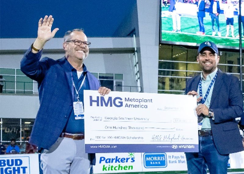 Hyundai Motor Group Metaplant America announced a $100,000 donation to Georgia Southern University during the Eagles' football game against Maine on Saturday.