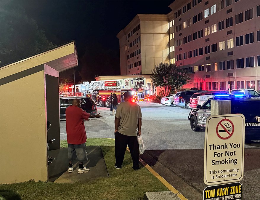 Firefighters and three fire engines and one tower truck with the Statesboro Fire Department responded to the scene of a "structure fire" at the complex about 9 p.m. as residents filed out of the building.
