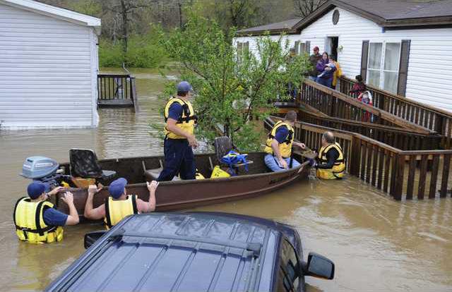 Dozens of cars had water up to their roofs. Rescue workers wearing life jackets waded through muddy water nearly to their chests to reach stranded residents. Hundreds of more people in mobile homes on higher ground were isolated because water covered the only entrance to the complex.