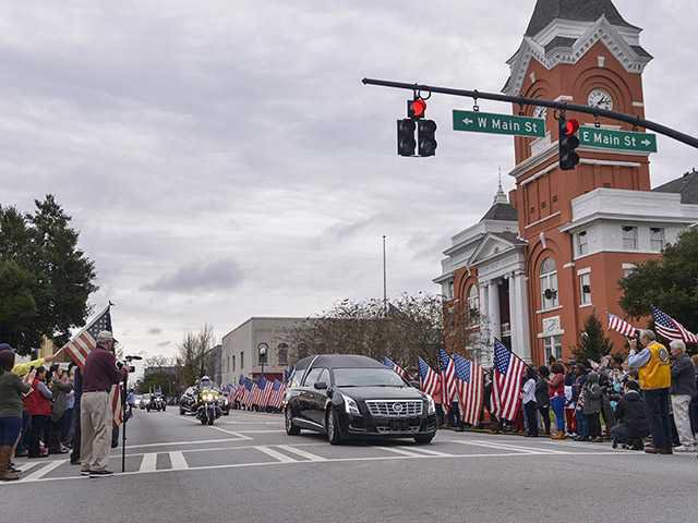 When the hearse bearing the body of U.S. Air Force Staff Sgt. Chester J. McBride III turned the corner half a mile away, a shouted order of "Attention!" could be heard all around the Bulloch County Courthouse area.