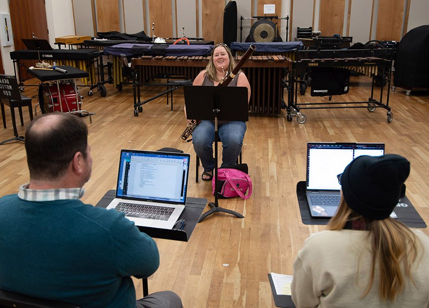 “After Monday, we’re looking at a group of 45 in the band, which surpasses what I was hoping for the first band. Roughly half are members of the community – not students. It really is turning into what I hoped this ensemble would be – a town and gown group equally split between students from the campus and people from the community.”