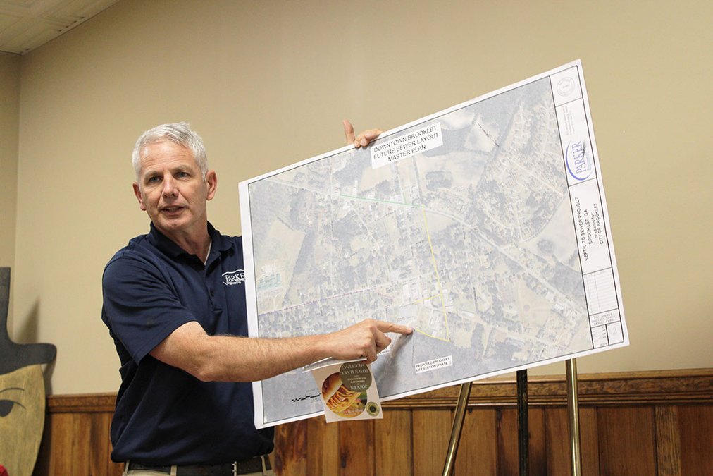 During Brooklet’s “hot dog town hall” last Thursday, citizens heard about progress on Phase 1 of Brooklet’s sewer system – a lift station and pipeline connecting to Statesboro’s waste treatment plant. The two cities recently updated their agreement so that Brooklet has capacity to serve the planned new, larger Southeast Bulloch High School.