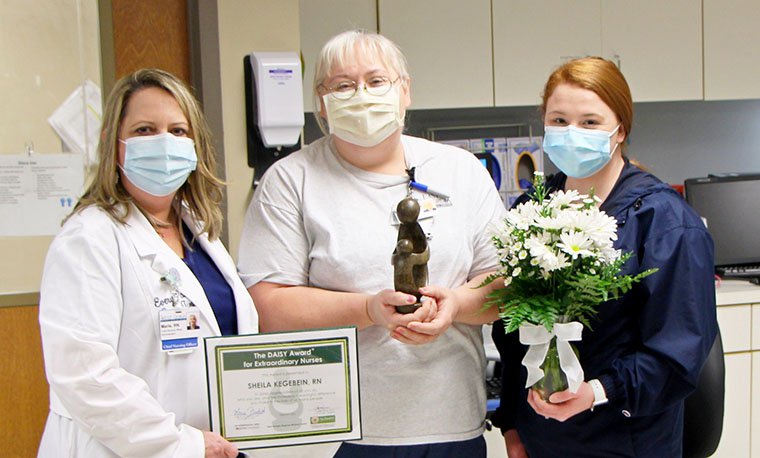 Sheila Kegebein, RN, was recently awarded the DAISY Award for Extraordinary Nurses at East Georgia Regional Medical Center. After leaving EGRMC for a brief period, Sheila began nursing at EGRMC again in 2015 in the Cardiac Care Unit.
