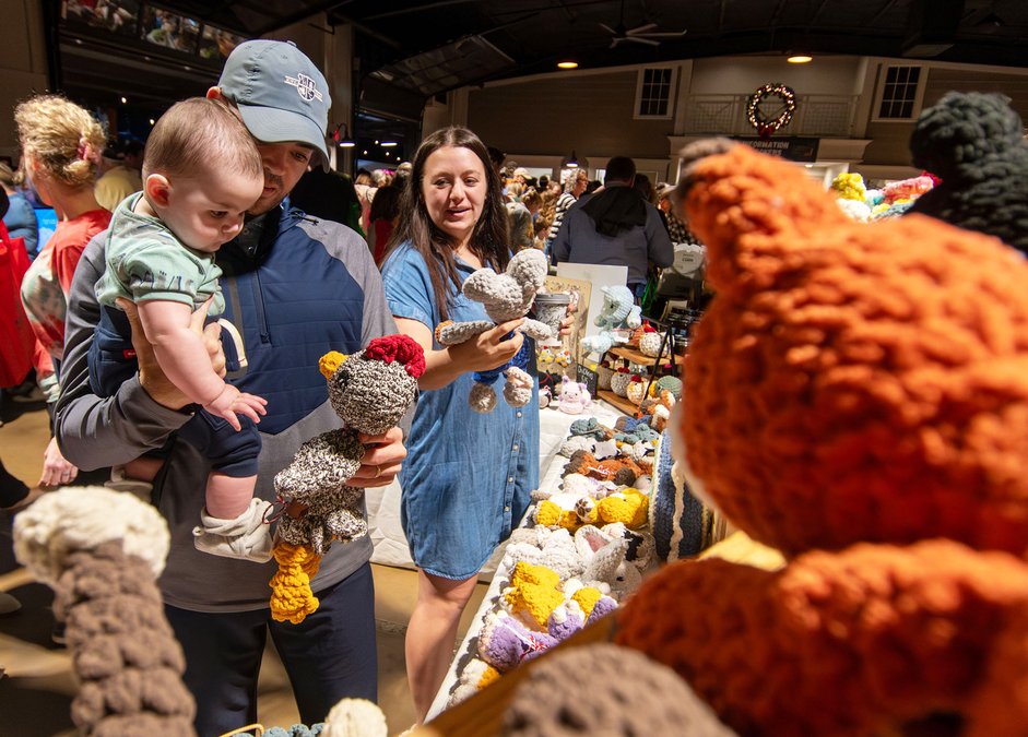 James and Lauren Wiggins help son Scott, 7 months, pick out a crochet creation by Clara Joy Kitchens at the annual Shopping by Lantern Light event.