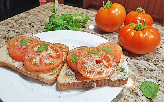 4) Tomato Sandwich with Herb Butter — Toasted bread, softened herb butter and seasoned tomatoes make for a homegrown tomato sandwich like no other.