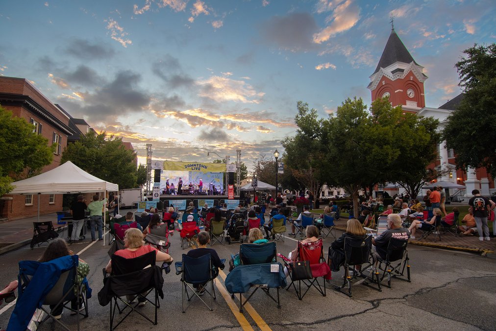 As the sun sets in downtown Statesboro, country music artist Cole Goodwin plays at the final Downtown Live event of the 2024 season Sept. 12.