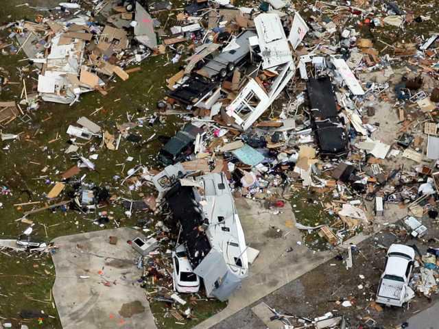 On Tuesday, one of the hardest-hit areas along the Gulf Coast was a recreational vehicle park in the town of Convent, in southern Louisiana. RVs were tossed about and lay on top of wrecked cars and pickup trucks.