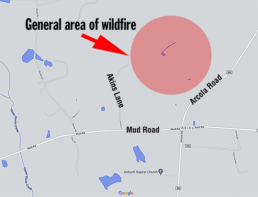 Haire said the landowner had secured a controlled-burn permit for five acres of his timber land of pine trees located off Akins Lane, which is a dirt road connected to Mud Road near Arcola Road in southern Bulloch.