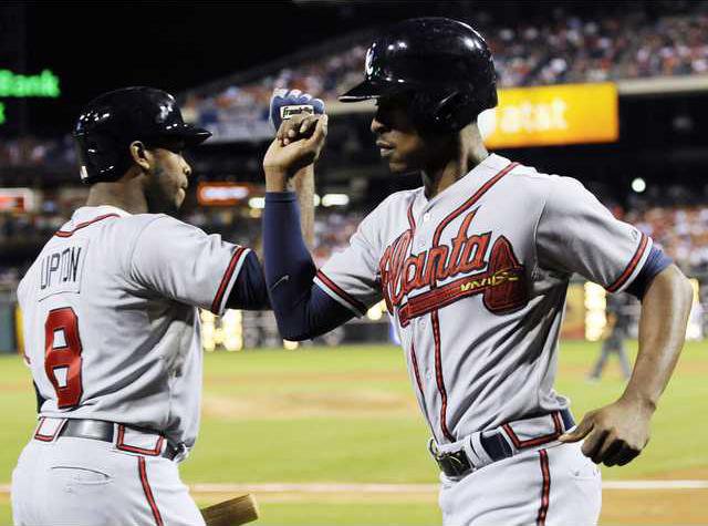 Notes: The Braves also won 10 straight games from April 5-16. ... The Phillies have lost five straight series. ... Darin Ruf extended his streak to 32 straight games reaching base safely with a fourth-inning single. Ruf also singled in the ninth. ... After an off day on Monday, the Phillies host Chicago for a three-game series beginning at 7:05 Tuesday night when right-hander Kyle Kendrick (9-8, 4.29 ERA) opposes Cubs right-hander Edwin Jackson (7-11, 4.65). ... Braves lefty Mike Minor (11-5, 2.75) faces Nationals right-hander Stephen Strasburg (5-9, 3.04) at 7:05 Monday when the teams begin a three-game series in Washington.
