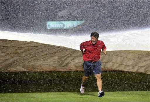 Rain delayed the game 1 hour, 53 minutes before the start of the sixth inning.