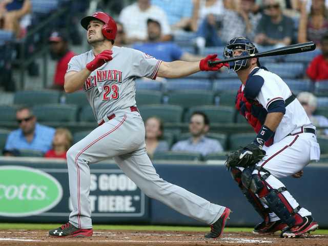 Adam Duvall hit a two-run homer and drove in three runs for the Reds.