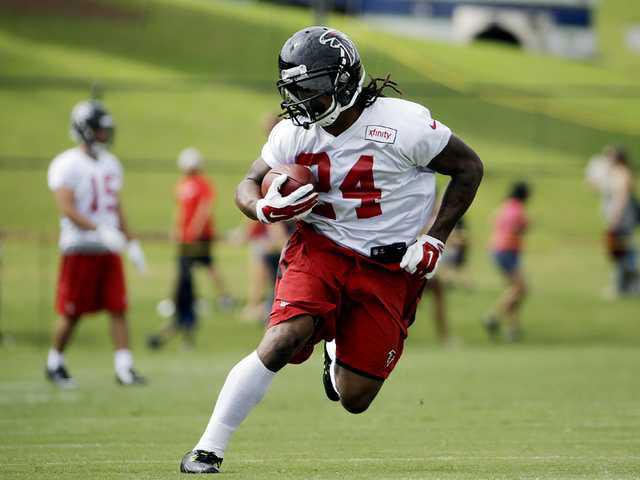 FLOWERY BRANCH, Ga. (AP) — Devonta Freeman was more than willing to take up the slack when Atlanta Falcons rookie running back Tevin Coleman missed Wednesday's practice with a strained hamstring.