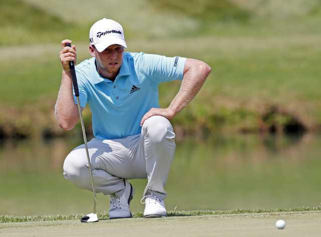He kept his three-stroke lead with a birdie on No. 3. After a bogey on No. 5, Berger came right back with a birdie before running into trouble on the par-3 14th. He hit his tee shot into the water in front and two-putted from 16 feet for bogey trimming his lead down to a stroke.