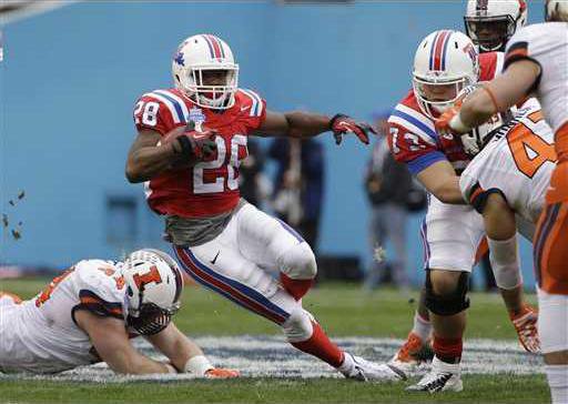 DALLAS — Kenneth Dixon scored one of his two touchdowns on an 80-yard reception and Xavier Woods scored on a 69-yard interception return to help Louisiana Tech beat Illinois 35-18 in the Heart of Dallas Bowl on Friday.